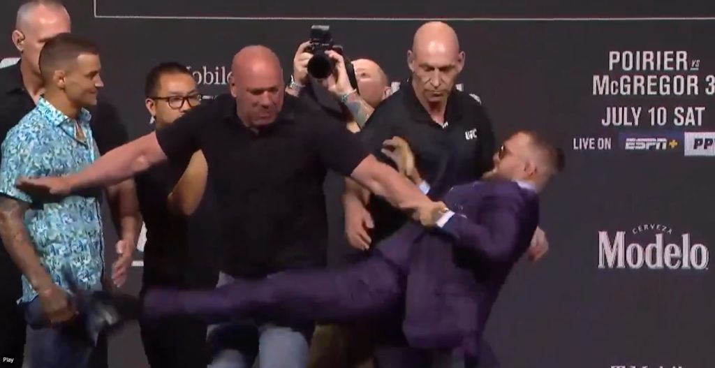 This past January, we saw a different McGregor in Abu Dhabi, a respectful, veteran McGregor who had his family in tow. He was oddly effusive in his respect for Poirier, and people wondered at the time if this version of McGregor would be successful, since he’d built his entire career on scare tactics and intimidation. The answer was no, and sure enough, he reverted to that past version of McGregor at Thursday’s press conference ahead of the Poirier trilogy fight: