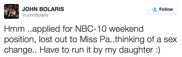 John Bolaris, Upset about Not Getting NBC 10 Job, Ponders a Sex Change