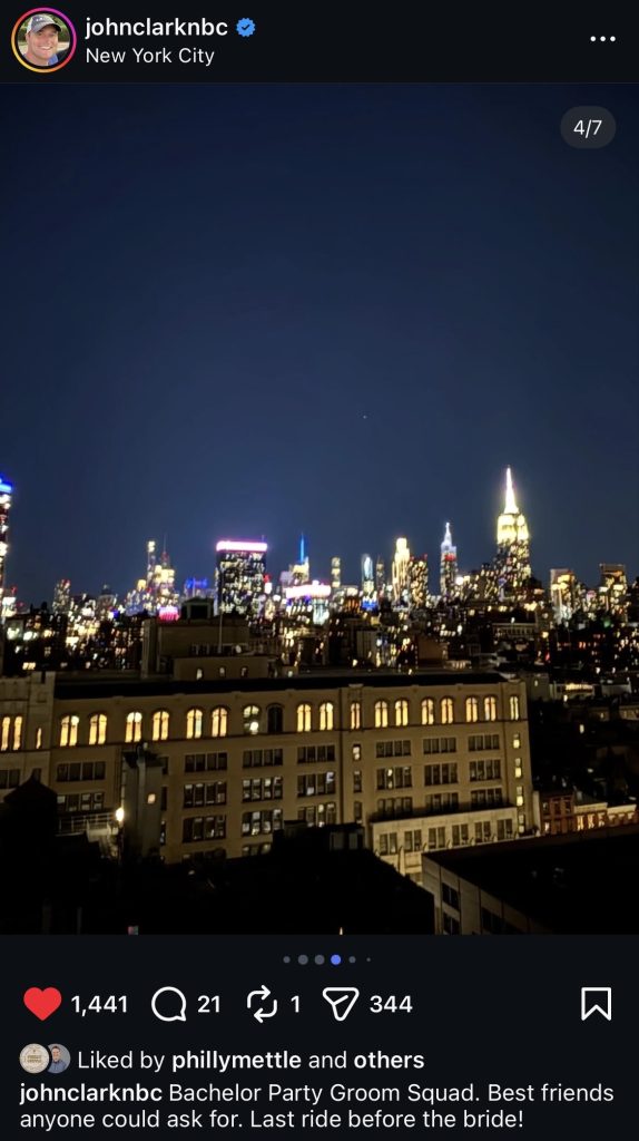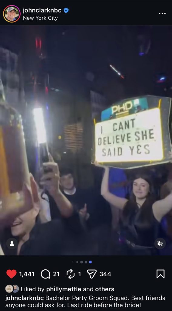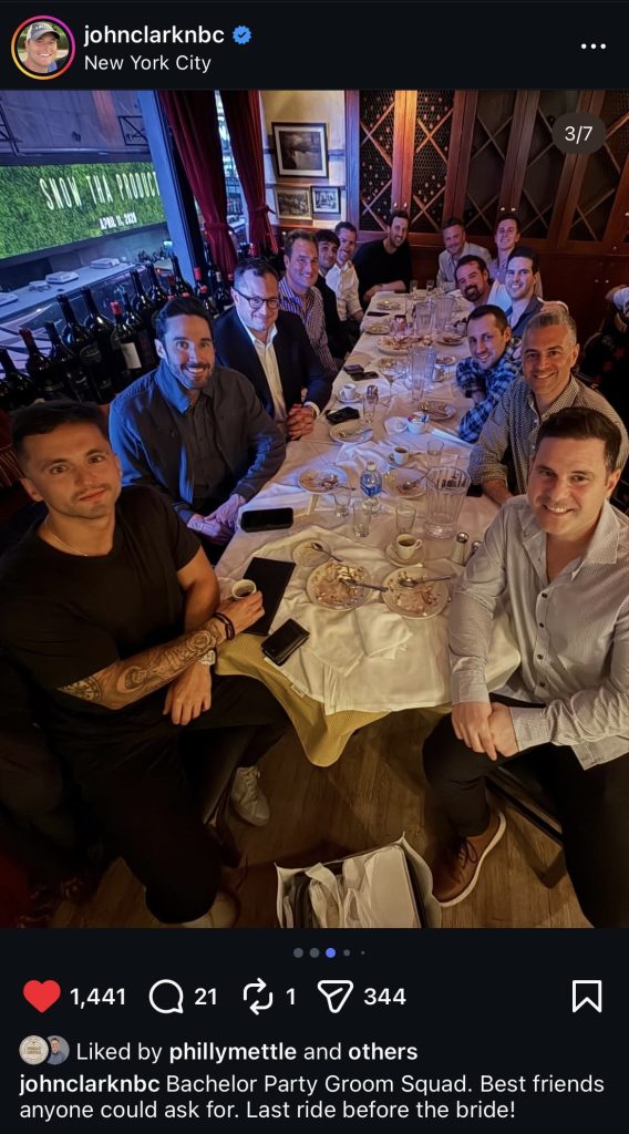 If you don’t follow John Clark on Instagram (the hell you doing? Follow the man!), you might’ve missed that he just had his bachelor party. I gotta say, this post was a real nice post. As I was swiping through the photo carousel, I realized I was smiling ear to ear. This is what it’s all about! Look at this crew! –