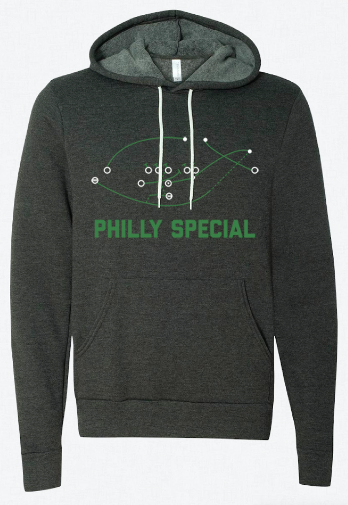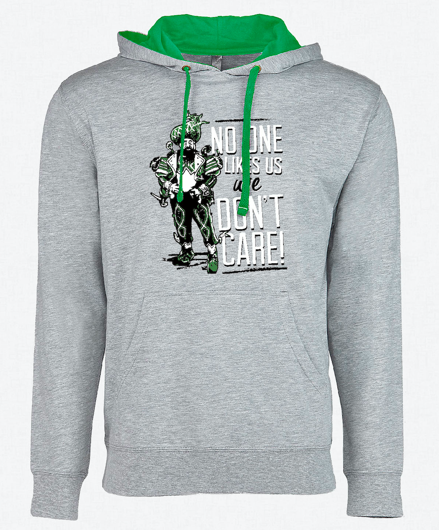 We are only doing a limited run of these hoodies. They are printed on super-soft, premium blends. The Philly Special is on a Bella Canvas sponge hoodie, and No One Likes Us We Don’t Care is on a lightweight French terry.