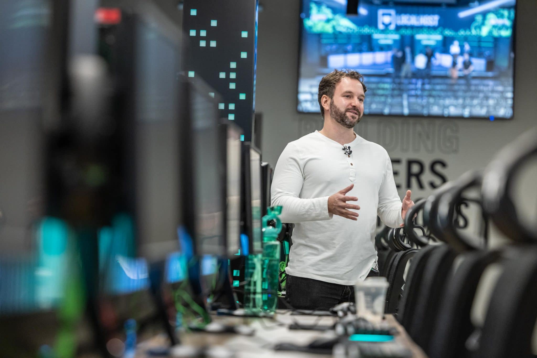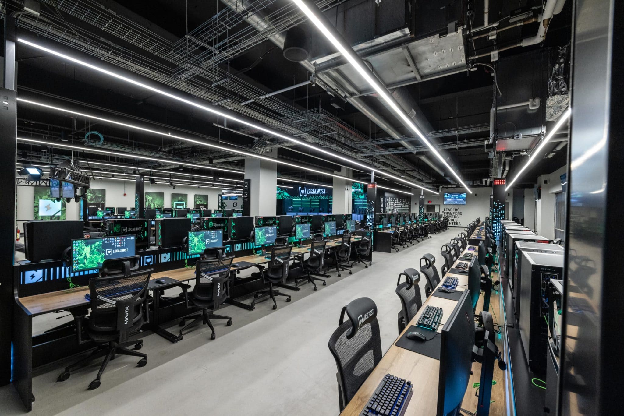 Fazio: You can think of it like an athletic complex. If you show up at a hockey complex, you’ve got a bunch of rinks, and you’re playing your games or having your practices on a variety of rinks and maybe one of the rinks is a stadium, and that’s where the championship games are happening. That’s what our facility is like, with video game stations. You’ve got stations all across the place that you can play for daily practice for your high school, your college, training, or maybe hang out with your friends and play. And then there’s a big stage that seats four or five hundred people, and that’s where the championship match will happen. It really replicates what traditional sports look like, with practices, tournaments, summer camps, training camps, and then there’s a whole broadcasting element, too, the difference being that there’s not necessarily a big market for youth sports broadcasting, but amateur video game broadcasting has been a massive industry for us.