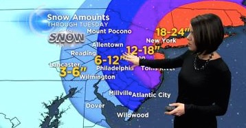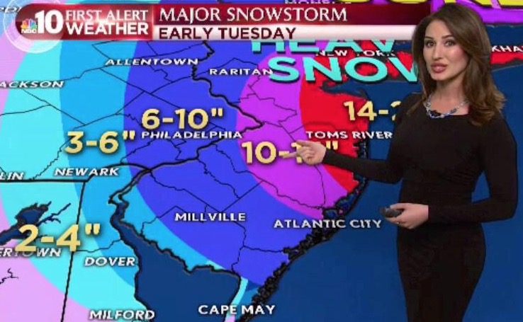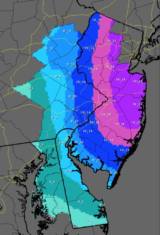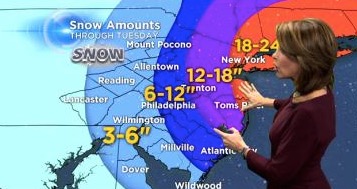 East of Philly (esp near coast, trenton, and near NYC) 8″-14″ with some blowing snow