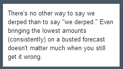 They pretty consistently took the under on all the outrageous forecasts.