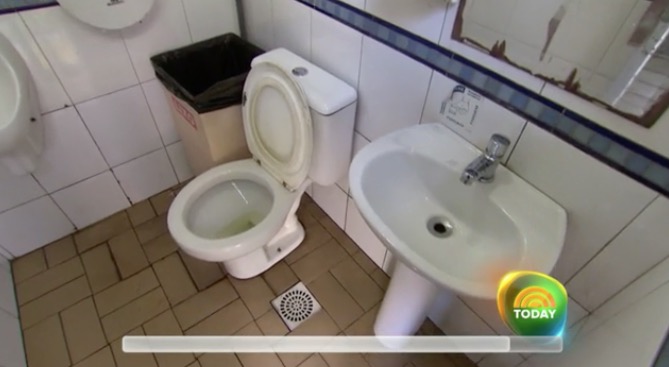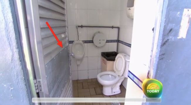 Uh oh, well this could be a problem for the corrupt Brazilian authorities smearing Ryan Lochte’s… uh… good(?) name. The Today Show visited the bathroom Lochte supposedly vandalized. Yet the only sign of “vandalism” was an outline on a wall where it appears an advertisement was once present. The bathroom, where Lochte supposedly broke a mirror and other things? Well, nothing is broken. The mirror is neither broken nor new. Meaning that if Lochte did break the mirror, as Brazilian authorities claim, it was replaced with a mirror that appears to be 20 yards old. Never mind the fact that the gas station never produced photos of the damage that was done.