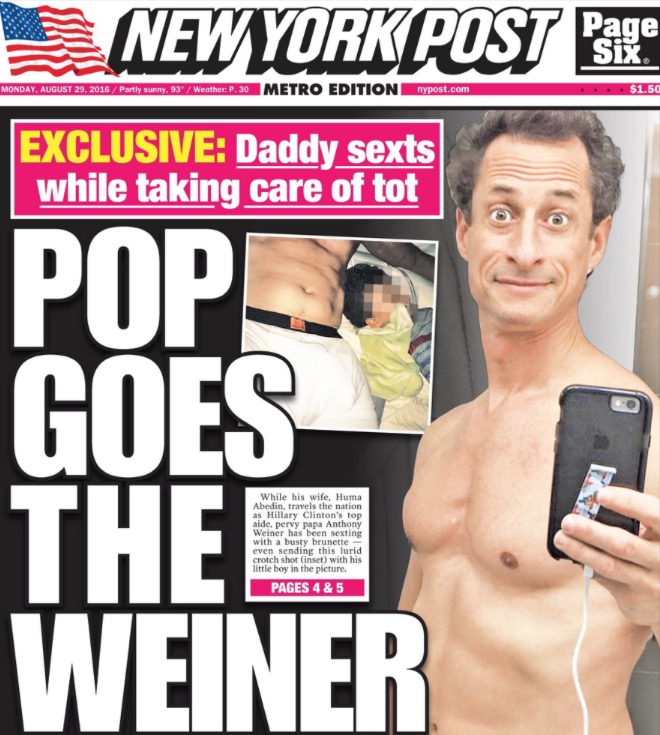 This is incredible. I just watched the Weiner documentary this weekend. It’s incredible. By the second time he got caught you’d think he would’ve been done. But nope. I actually think he wants to get caught. He needs this attentions, craves it. Watch Huma’s expressions the second half of that movie and tell me she doesn’t know the guy she is married to is a Grade A loser. The difference between Huma and Hillary is that Hillary stuck by a charismatic winner who elevates her, while Huma is sticking by a dead-eye loser weighing her down.