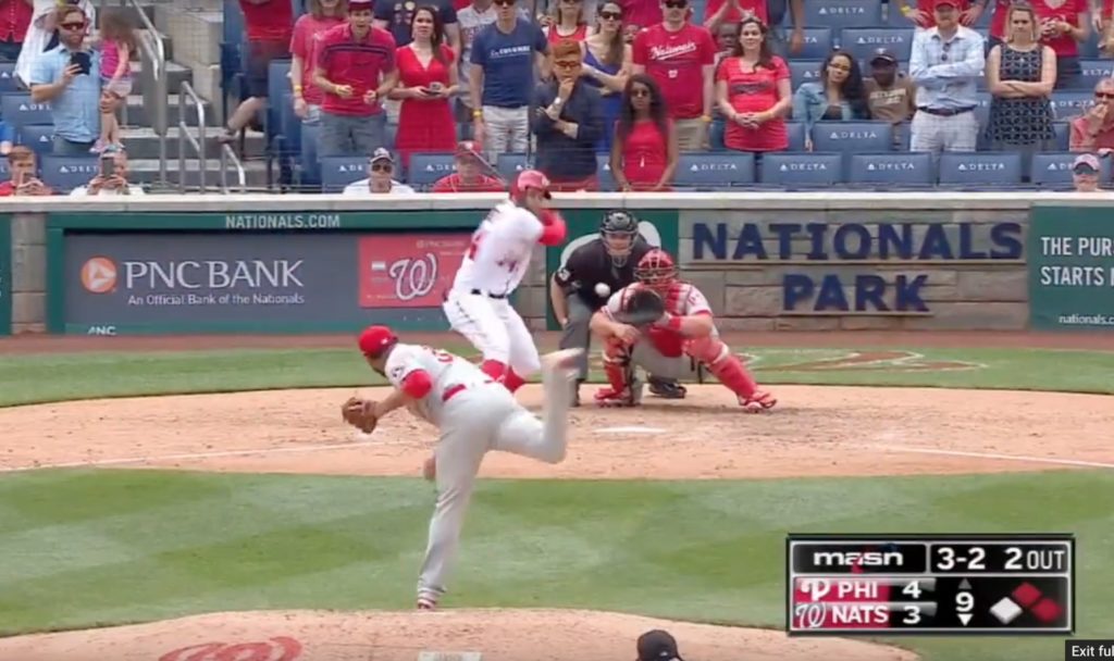 Benoit knew it, Bryce knew it, and everyone gathered ’round Easter TVs knew it before the ball crossed the plate– it was headed toward the fat part of Harper’s bat like a heat-seeking missile. The Phillies stink, they don’t have a closer, and they continuously find new ways to lose games. Worse, this time, they had some control and could’ve elected to walk Harper – one of the game’s best players who looked dialed in against an overmatched pitcher – or at least pitch around him. But rather than put the winning run on second, Pete Mackanin let the 39-year-old pitcher throw to Harper. Pete?