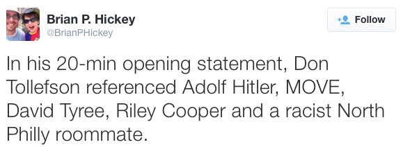 Don Tollefson will mount his defense today. His opening statement last week went off the rails pretty quickly…