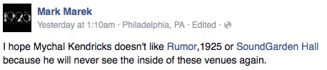 Local promoter (?) Mark Marek calls out Mychal Kendricks:
