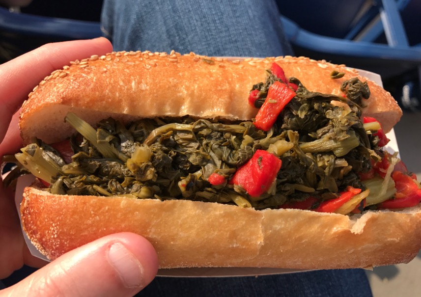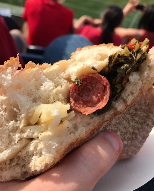 I had a South Philly Dog at the ballpark over the weekend and could not have been more disappointed in my favorite item. The rabe was bland, lacking garlic, and tasted like it had sat in a steaming tray since last Thursday: