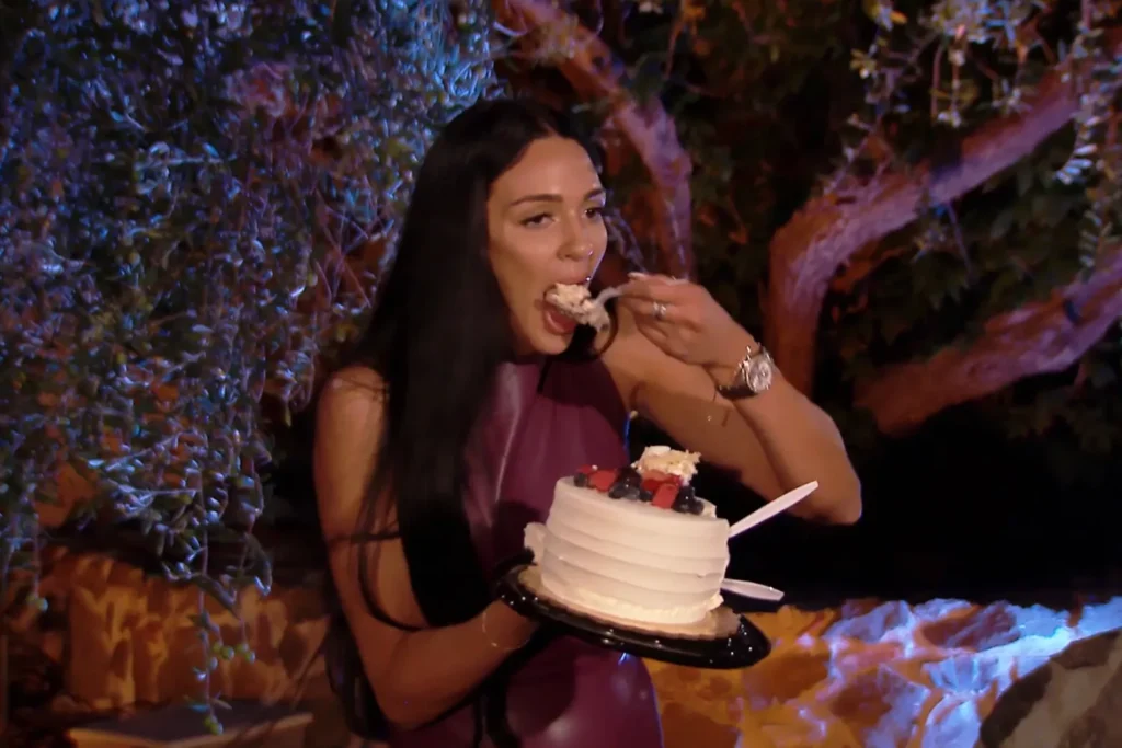 3) Before she leaves, the producers bring her a cake, which was going to be her one-on-one bit, since they didn’t get to eat cake at the fake wedding reception. She requested red velvet. *Narrator’s voice* – “It was not red velvet.” annnnnnnnd she handles it like how you think she would: