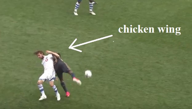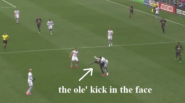 That was undeniable. You watched the same games I did, the same sequences where Sapong would get absolutely clobbered by defenders in 2v1 situations. No whistle. There was a game a few years back where Sapong was fouled a franchise-record seven times, which I argued was actually eight. I cut clips and still frames of the ridiculous infractions, like this: