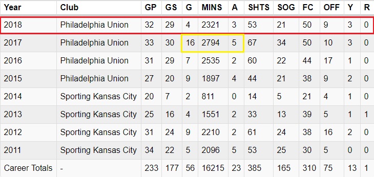 As a starting forward in a one-striker system, the Union just needed more than that. You needed more than one goal per 337 minutes in 2018, 2016, and 2015. You needed the one goal per 174 minutes he played in 2017. You needed double-digit tallies from C.J. and you needed to get him service from the wings on a consistent basis.