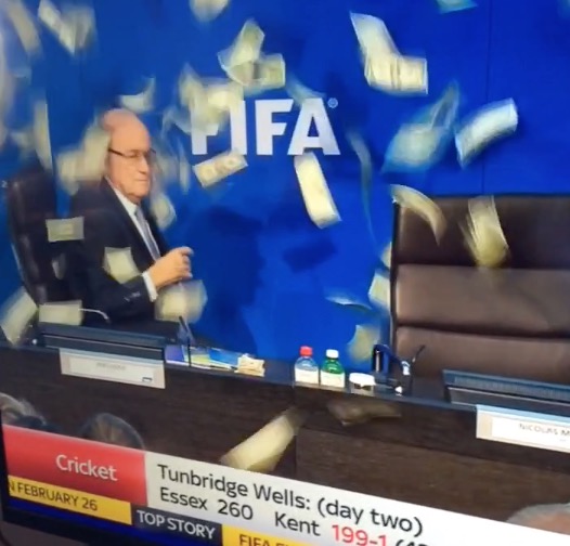 Guy Approaches Sepp Blatter, Throws Money All Over Him