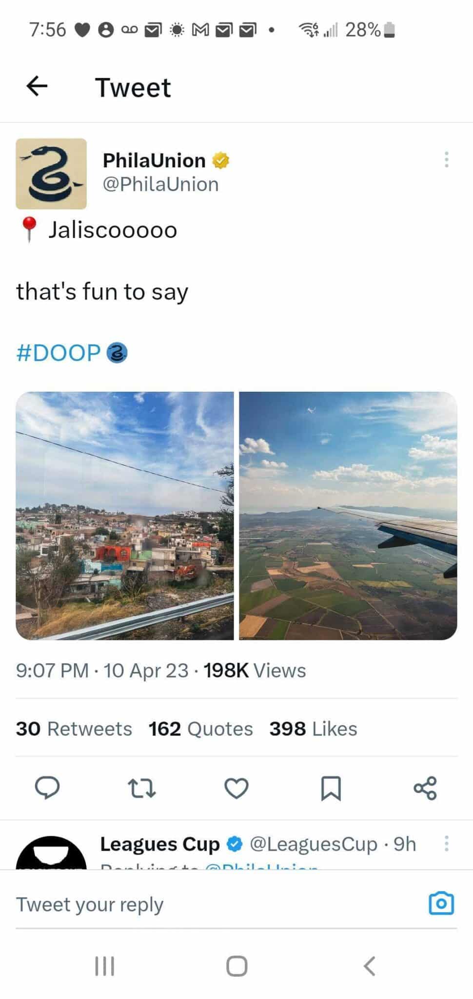 The Union play Atlas F.C. in the second leg of the CONCACAF Champion’s League quarterfinals on Wednesday night. They won the first leg 1-0 at home, then flew to Guadalajara on Monday and the person(s) running the Twitter account posted this (now deleted tweet):
