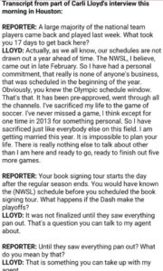 Trending Houston Reporters Are Giving Carli Lloyd Shit About Missing Her Women’s Soccer League Games After The Olympics Kyle Scott • Aug 29th, 2016