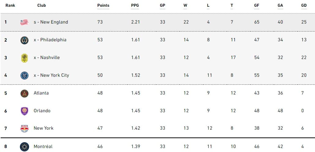 It means they are currently second place in the Eastern Conference, and can secure second with a road win against NYCFC in Sunday’s finale.