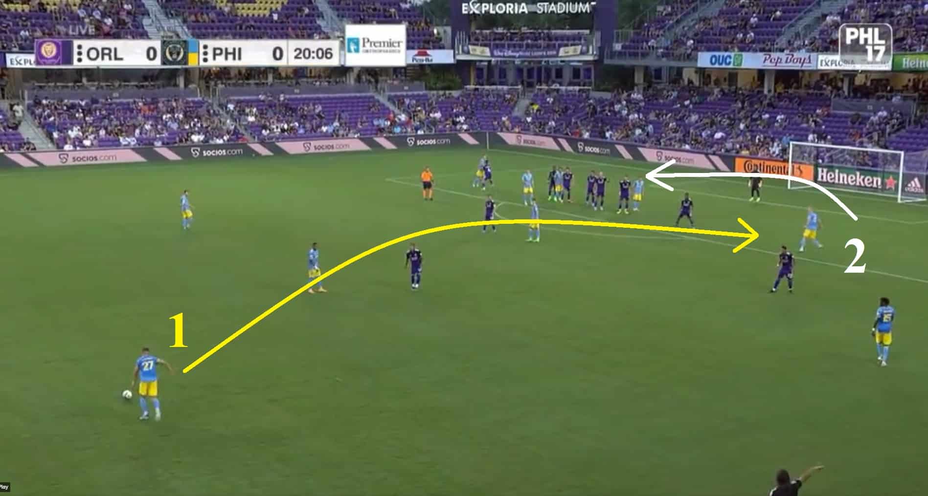 Anyway, the U have scored three set piece goals and two penalties in their last three games. They haven’t scored from open play since putting seven goals past D.C. United a few weeks back, and while the free-flowing attack isn’t necessarily there, they’ve been super-creative on dead balls and I want to highlight three routines I picked out from the weekend win against Orlando City.