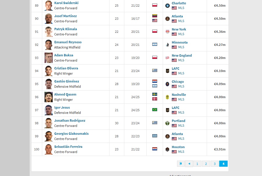 As for the Union, well, they don’t have a transfer fee that cracks the top 100. I scrolled as far as I could at TransferMarkt and the list stops after four pages and 100 players. They’ve got Damiani listed at 3 million Euros, so considering the list terminates at 3.9 million, you would think he’d probably land somewhere around 125 or so: