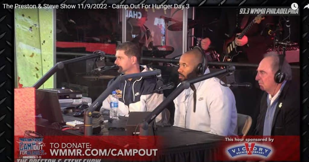 Tuesday, Preston and Steve and their crew spent 10 minutes explaining why Villanova head coach Kyle Neptune wasn’t going to participate in their pop-a-shot thing at the Camp Out for Hunger charity event. The gist is that Jay Wright used to do the event every year with the other Big 5 coaches, he retired, and so they tried to get Neptune involved, but some Nova assistant was rude up and hung up on them. That’s their story.