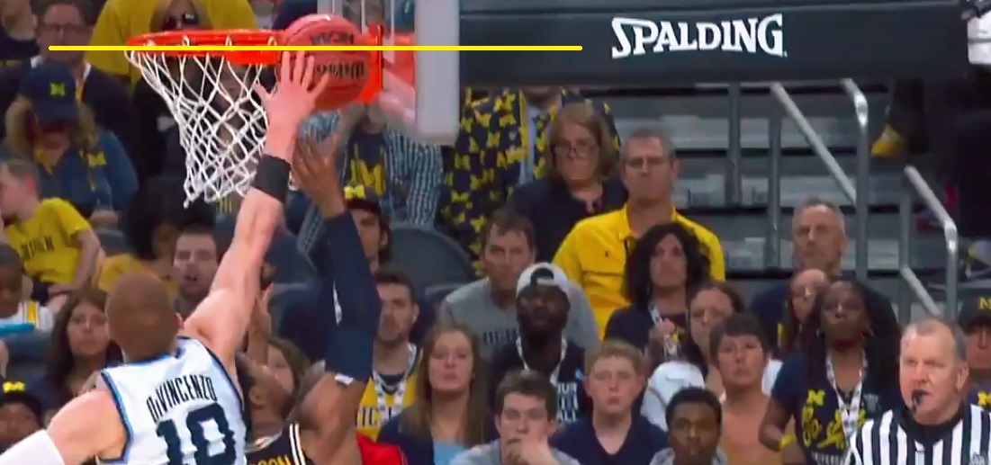 In this case, it looks like DiVincenzo gets it when the top third of the ball is above the rim: