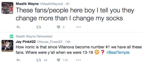 Maalik Wayns retweeted Pinkston and tweeted another dig at fans, but I think the latter may be referring to fans in Italy, where he is now playing because leaving Nova after three years for the NBA was a bad idea: