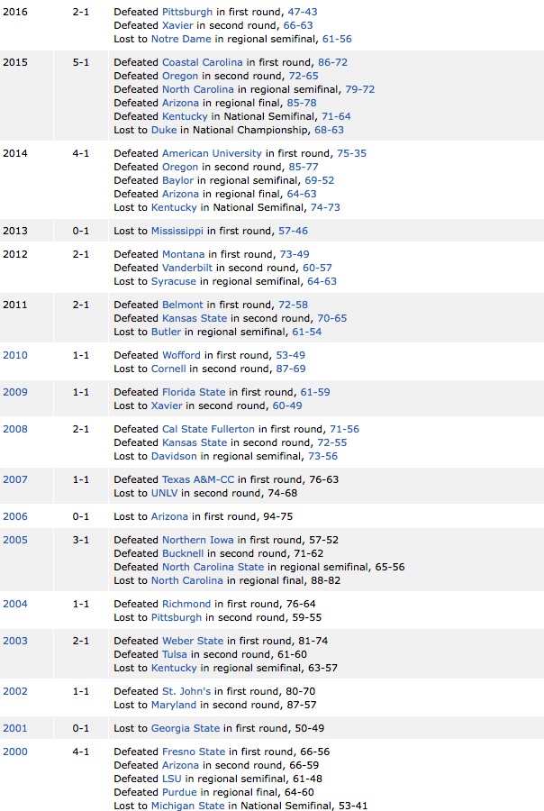That is nine Sweet 16s in 17 years, three in a row, and five out of the last six.