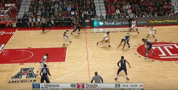 How does Temple build a beautiful basketball arena (really, it’s a great place) and not put a camera well at mid-court? I mean, this is the plane of the camera: