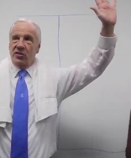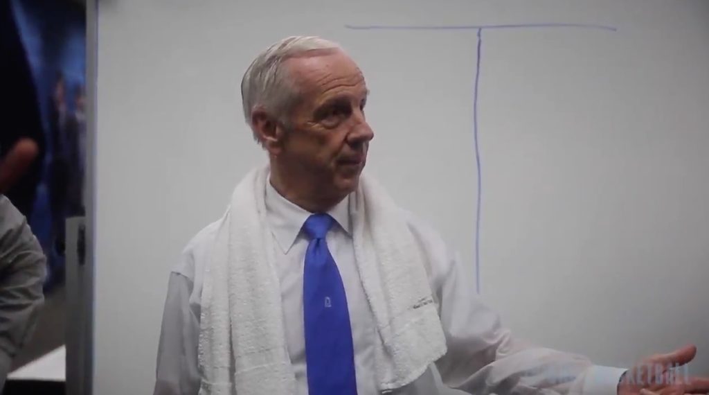 While we all wait with bated breath to find out what unfortunate soul got Jim Nantz’s tie (you can’t tell in this video– I looked), let’s turn our attention to the first math class North Carolina basketball players have attended since the Eric Montross years– Roy Williams’ post-game bracket mathetology, Hard Math: