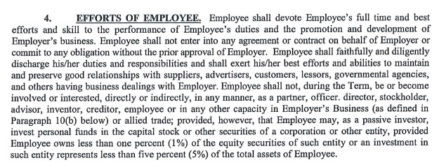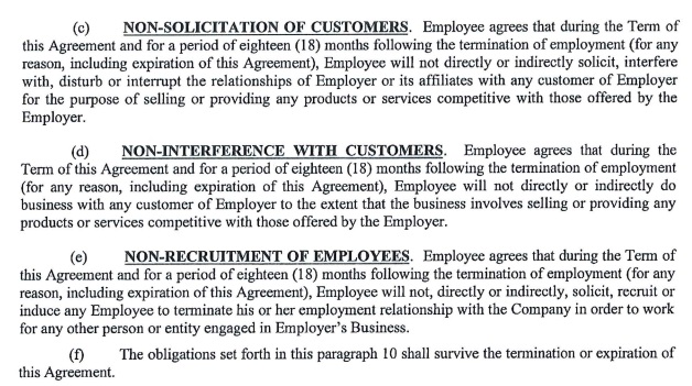 Paragraph 10(b) is the non-compete clause, which essentially frames this case, so I’ve clipped that in its entirety for you to read: