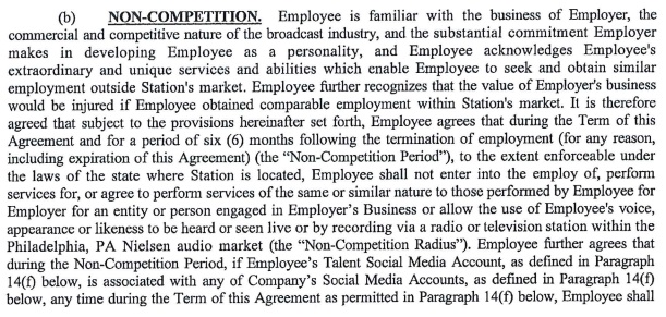 Some vague language there, but Beasley will use this in their argument that Gargano went behind their back to work with All City and begin compiling the staff. In their suit, they say that they “bring this action to prevent All City from running roughshod over Beasley’s Agreement with Gargano, a strategy that All City and Gargano have apparently hatched in order to steal Beasley’s investments for their own new venture in Philadelphia.”