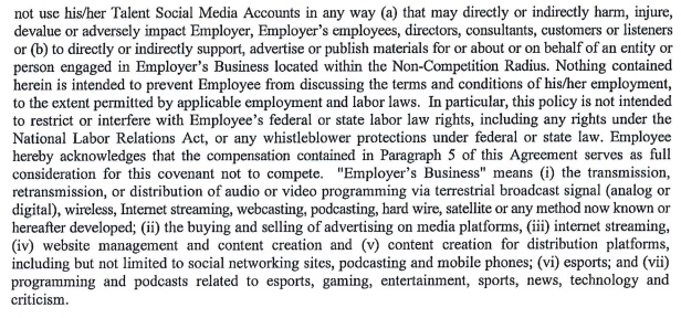 Okay, so it’s a six-month non compete for “services of the same or similar nature” within the Philadelphia DMA. This is what lawyers are going to really focus on here, the language in these two paragraphs, because in the Beasley lawsuit they allege that “Gargano advised Beasley that he intends to continue producing content for The Fanatic, but also that he has accepted employment with All City where he will perform on podcasts, write articles, and likely create other forms of Philadelphia sports-focused content that will compete directly with Beasley. In other words, Gargano intends to work simultaneously for two competing business to provide sports coverage and commentary to the Philadelphia marketplace, targeting the same audience and competing for the same local advertisers on each platform.”