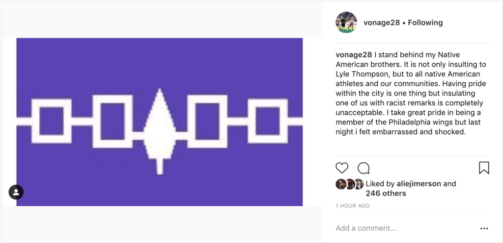 Lyle Thompson, the target of the comment, brought it up after the game on Twitter: