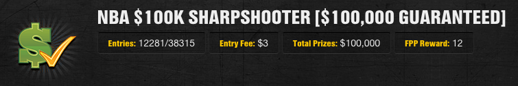 Tonight’s NBA $100k Sharpshooter awards prize money to the top 7,850 finishers and the total prize pool is a cool $100,000. It basically works the same way the football leagues did: