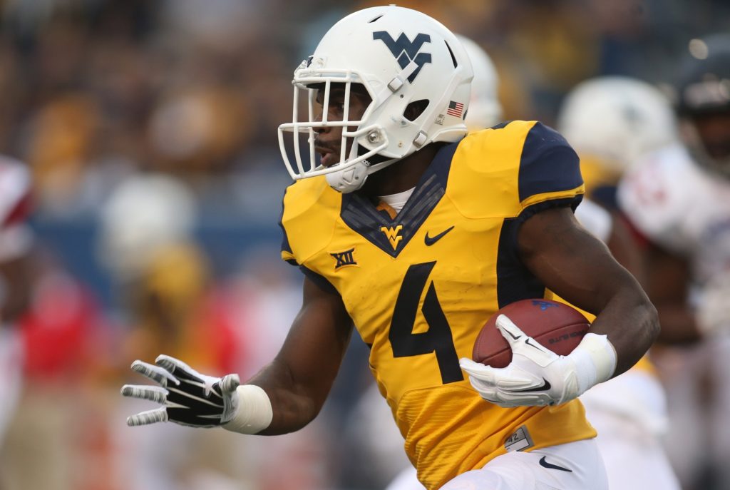 “The 5-foot-10, 208-pound running back led the Big 12 in rushing last season with 1,519 rushing yards. He added nine touchdowns and caught 26 passes out of the backfield, leaving West Virginia after his junior season. Smallwood ran the 40-yard dash in 4.47 seconds at the combine.”