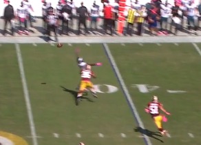And his taking sacks late were classic rookie mistakes. No big deal, but I stand by the opinion that he did not play well despite this incredible play that was negated by a dumb illegal blocking call: