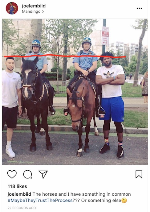 Photo evidence has emerged on Facebook that Simmons and Embiid are the same height, proving that Simmons did indeed grow two inches this offseason: