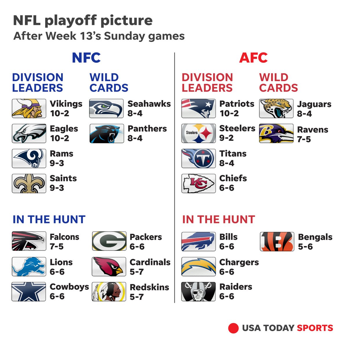 Now with the loss, here is the updated playoff picture heading into Monday Night Football: