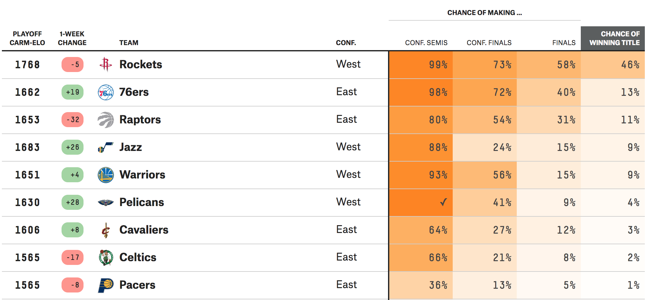 Unlike the 2012 team, this one is young and still growing. This won’t be their peak. They could actually win the Eastern Conference given the other playoff series going on and the losses suffered by Boston. Just take a look at FiveThirtyEight: