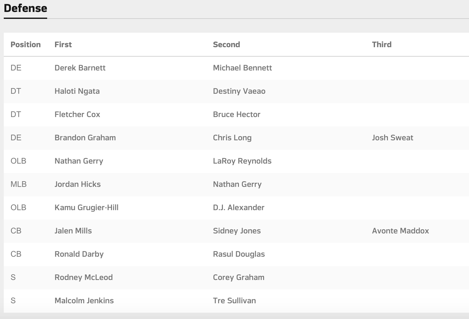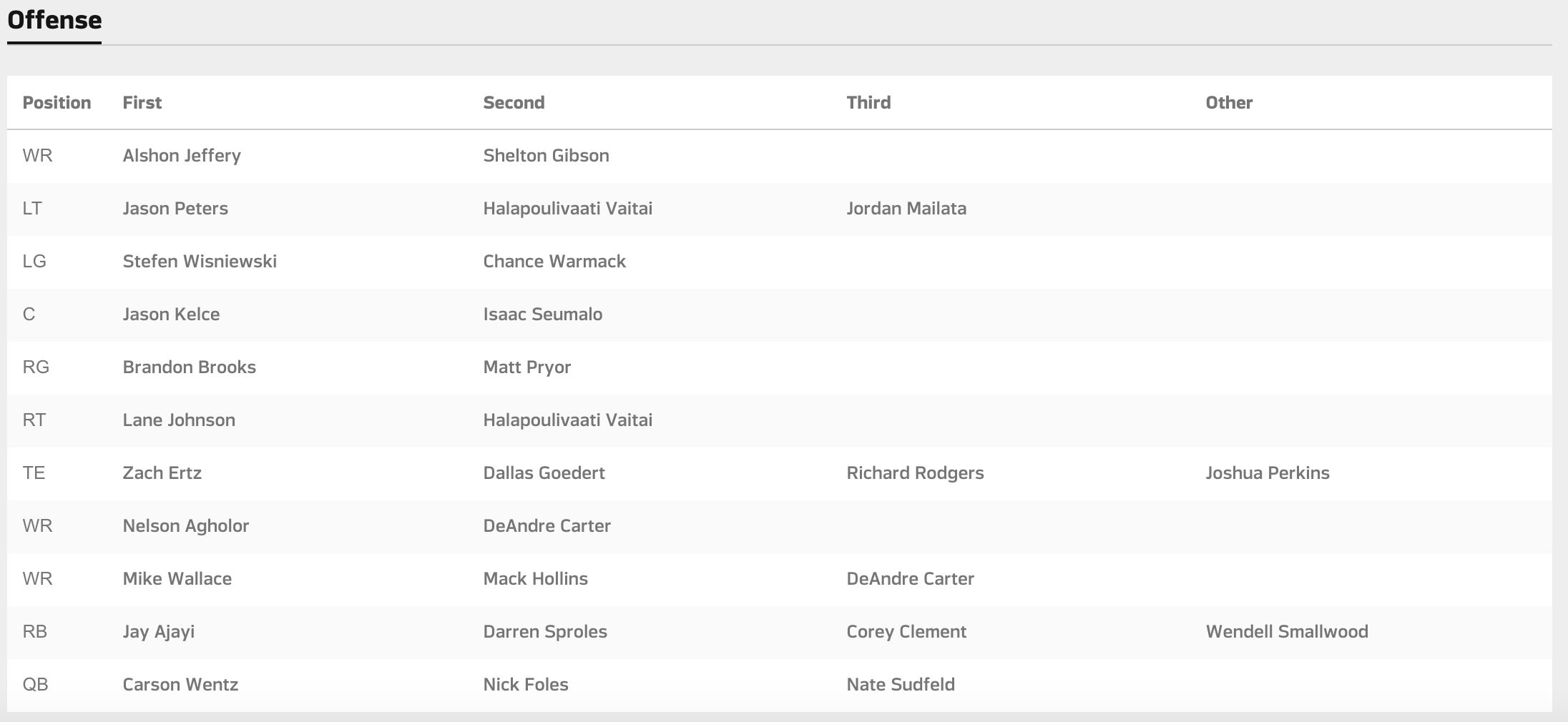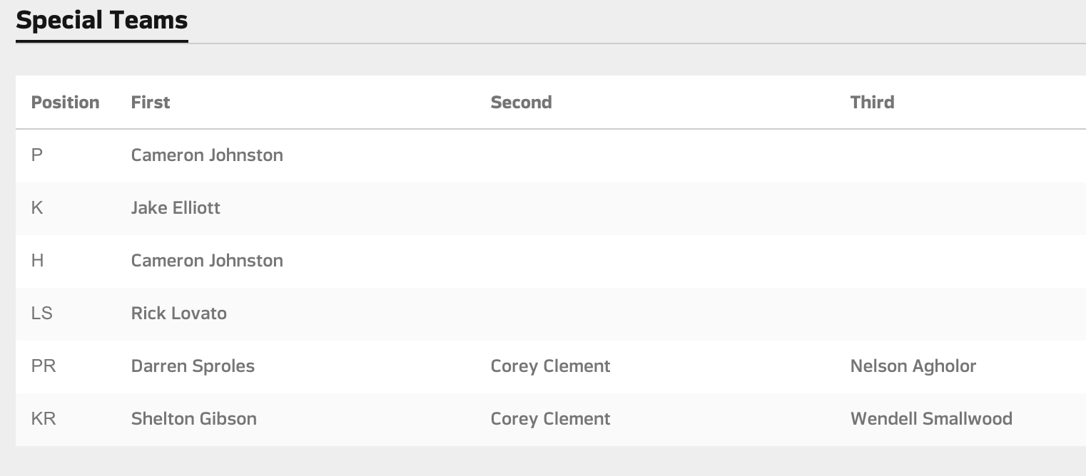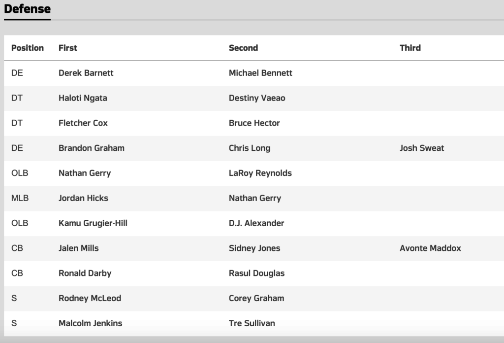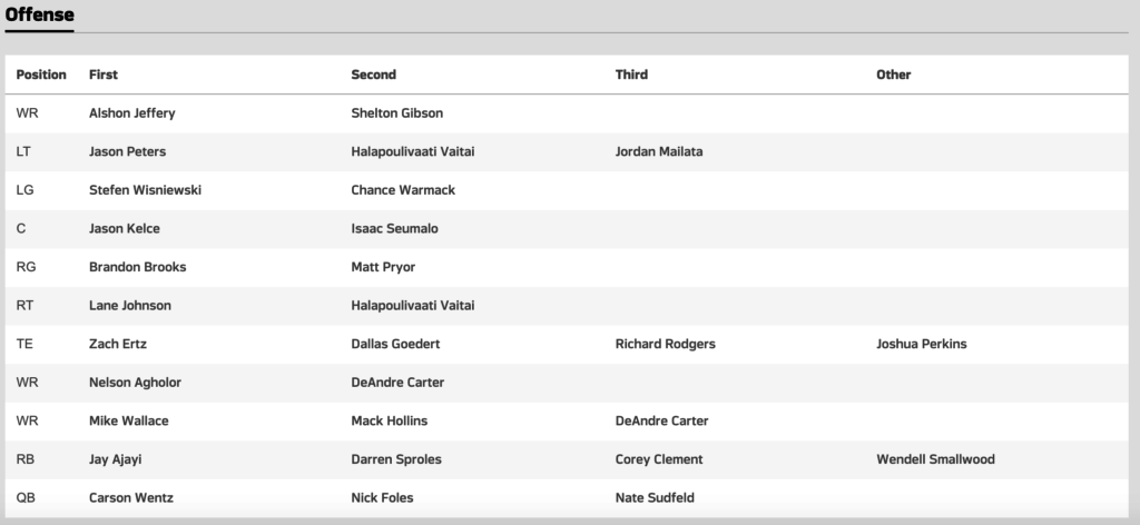 The Birds also released their first official depth chart.