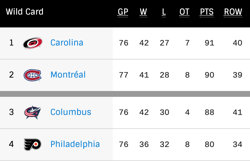 The Flyers host the Toronto Maple Leafs tonight at 7 PM on NBC Sports Philadelphia. Carter Hart will get the start. Here’s how the wild card looks after Florida was officially eliminated last night: